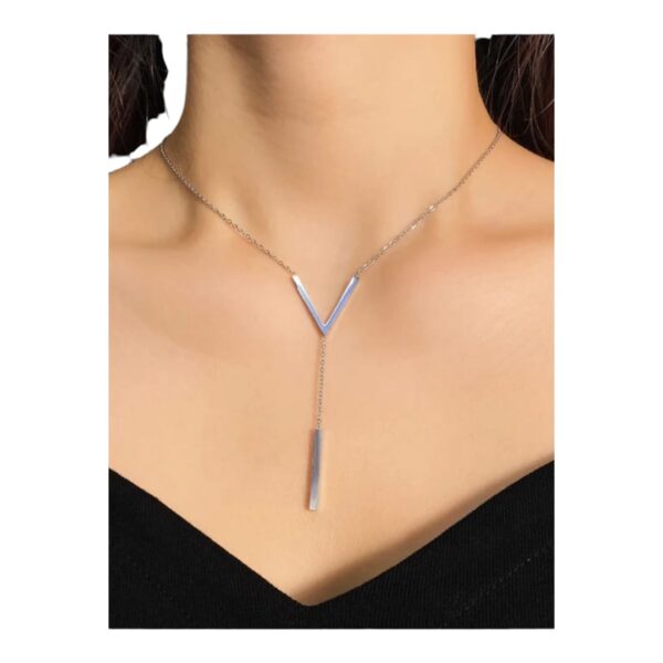 Be the first to review “Stainless steel V Letter pendent with bar in Silver”